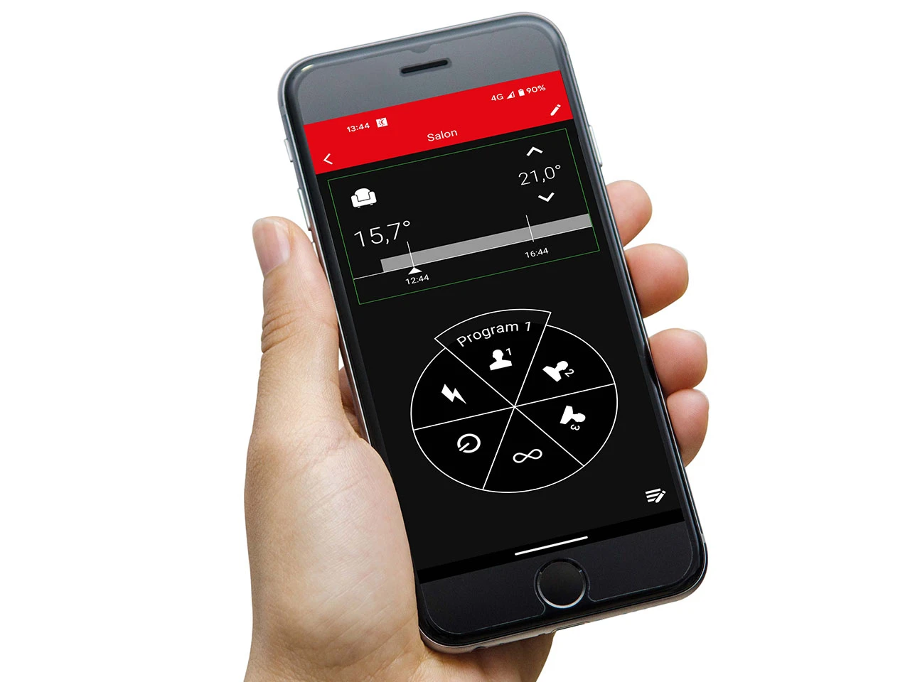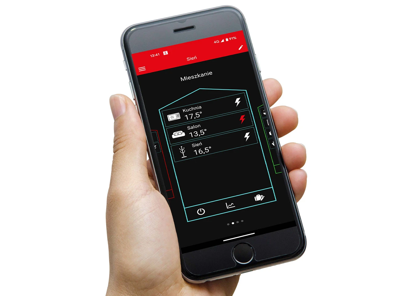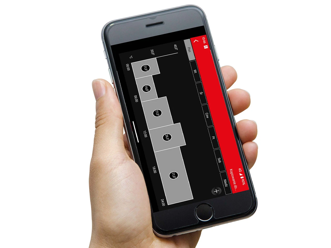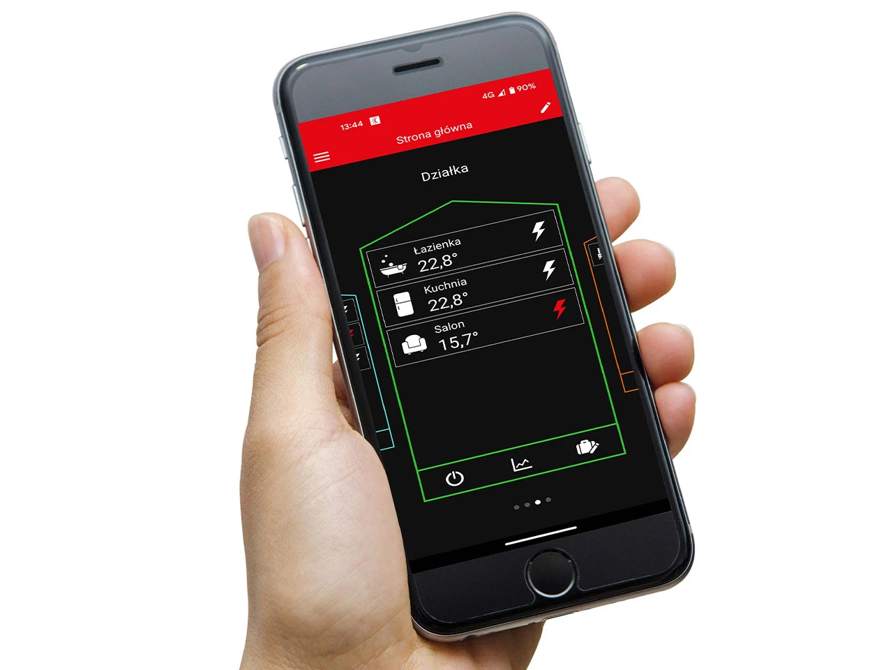 - Sterowanie za pomocą aplikacji na smartfony – wszystkie domy w jednej aplikacji, prosta kontrola do 100 termostatów.
